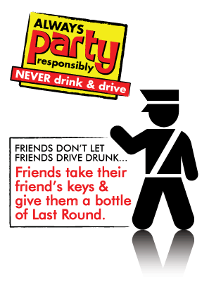 Last Round reminds you to ALWAYS drink responsibly and NEVER drink and drive.